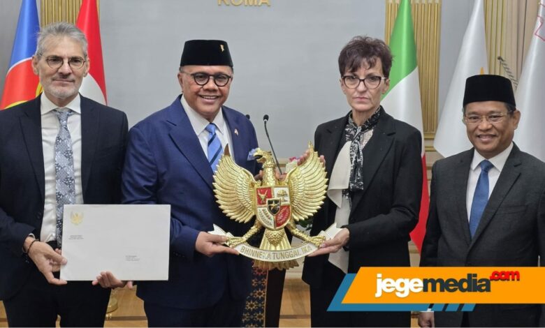Roma, JegeMedia–Duta Besar Republik Indonesia untuk Italia Y.M. Prof. Dr. Junimart Girsang menyerahkan surat kepercayaan kepada Presiden International Fund for…