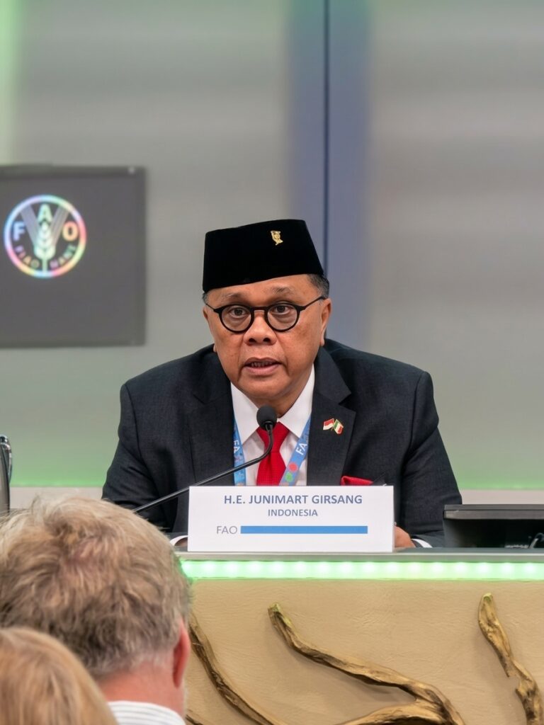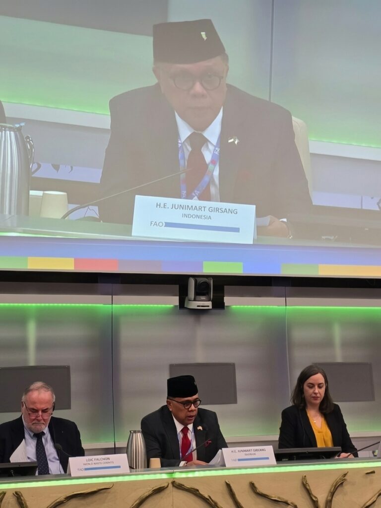 Dalam kesempatan tersebut, Indonesia juga mengapresiasi peran FAO dalam memfasilitasi kerja sama internasional melalui berbagai program, termasuk berbagi pengetahuan, bantuan teknis, dan mobilisasi pembiayaan.