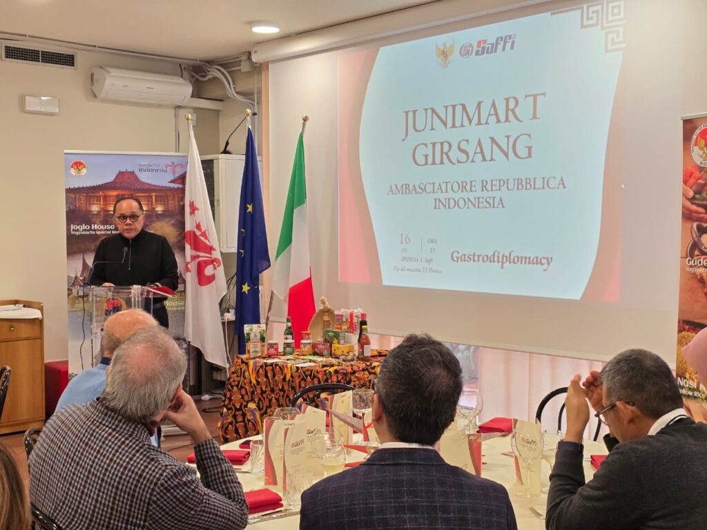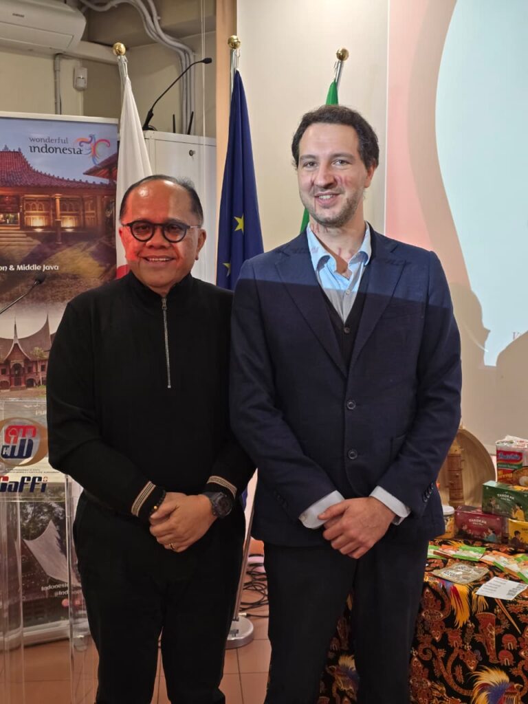 Junimart juga menyampaikan rencana pembukaan restoran Indonesia pertama di Roma, Padang Pagi Sore Hijau, sebagai langkah awal memperkuat kehadiran kuliner Indonesia di Italia.